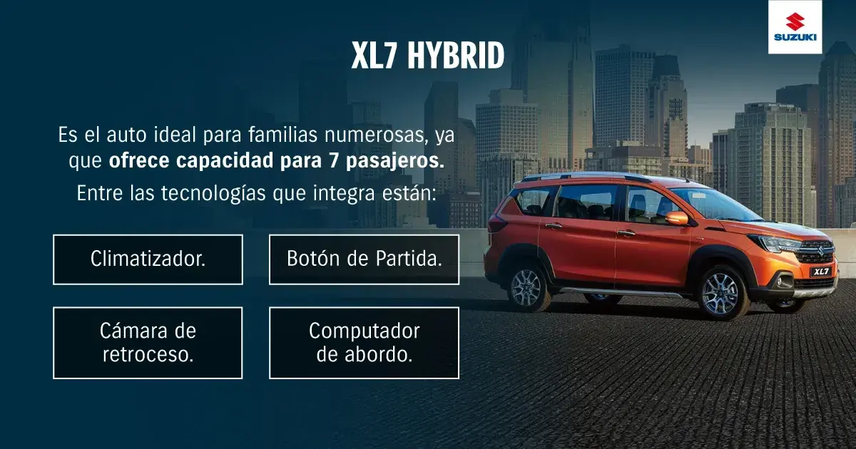 A nivel de equipamiento, el XL7 Hybrid no tiene nada que envidiar a otros modelos SUV. Como muestra, integra: