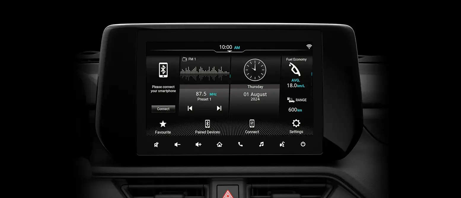 Pantalla táctil de hasta 9" compatible con smartphone, para disfrutar las mejores playlist, recibir llamadas, apps de mapas y más, sin desviar la atención de la vía.