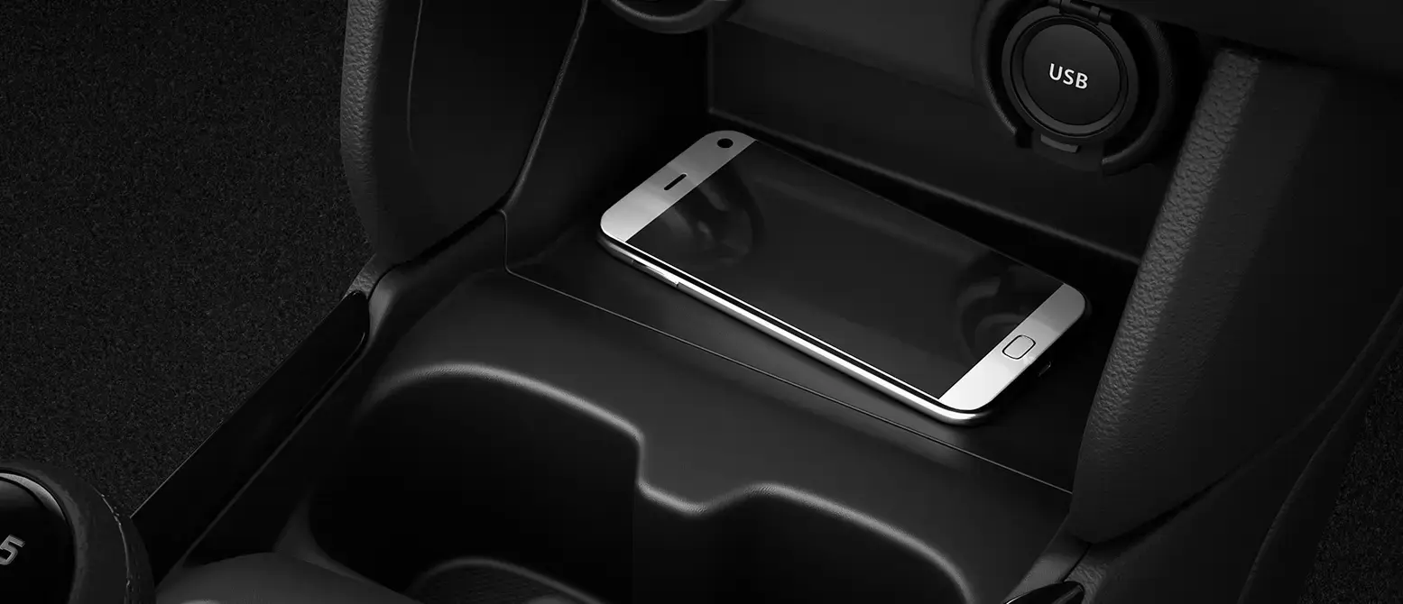 Compartimiento de carga inalámbrica en el Suzuki New Swift Híbrido.