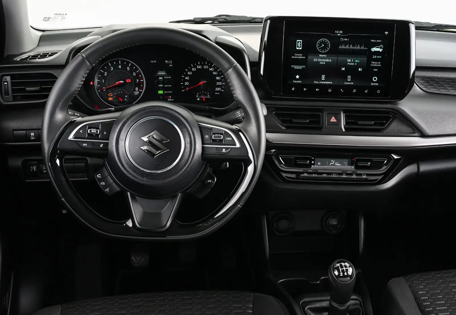 Vista del panel y más del Suzuki New Swift Híbrido, para hacer más emocionante la conducción.